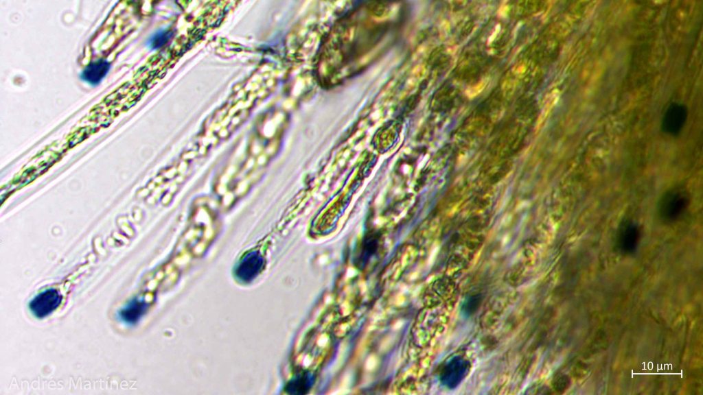 Ápices de las ascas con reacción amiloide.