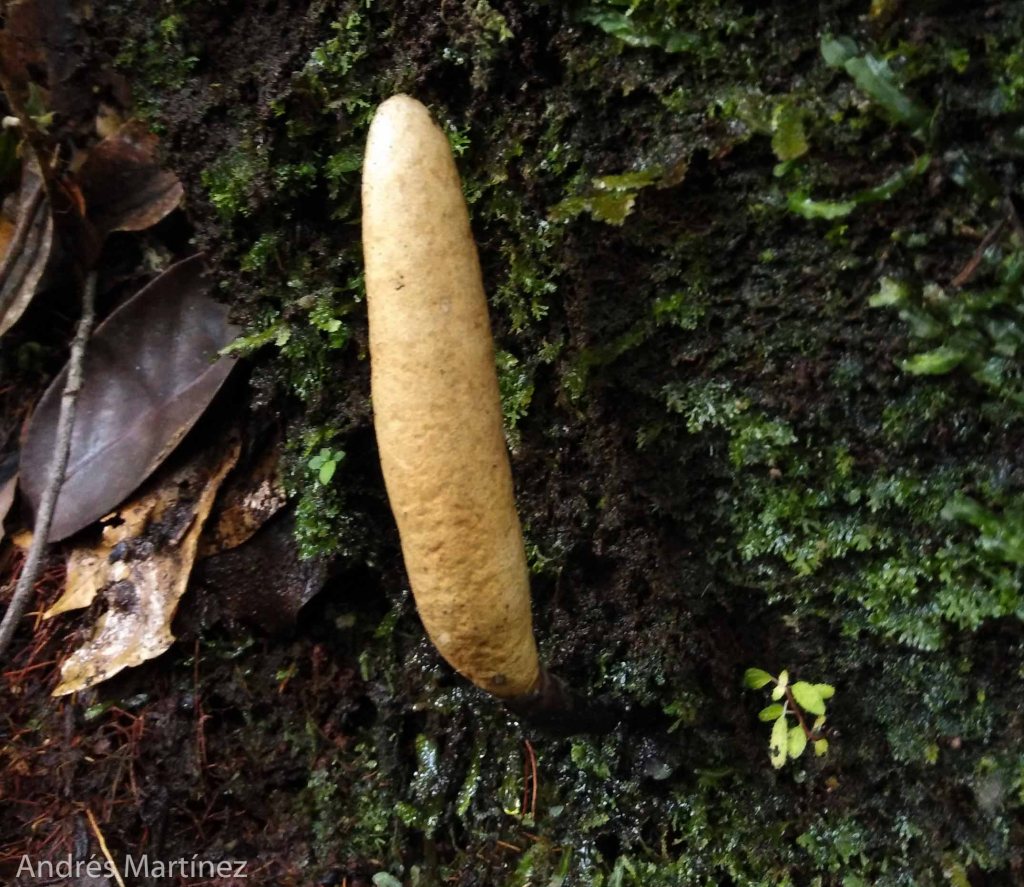 Descripción: Estroma clavado a cilíndrico, encapsulado: hasta 10 cm de longitud y 1.5 cm de grosor haciéndose más delgado hacia la base; marrón claro a marrón rojizo oscuro; textura lisa, en ocasiones rugosa o punteada, opaca y húmeda por el ambiente.