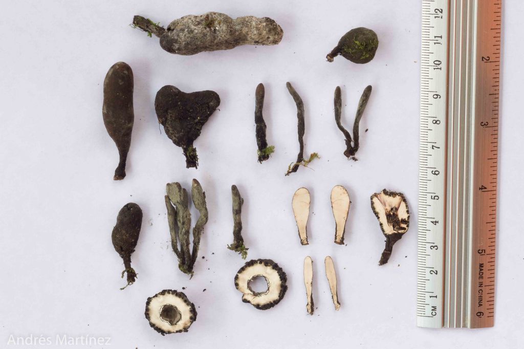 Descripción: Estroma variable en forma y tamaño; hasta 8 cm de longitud y 3 cm de grosor, cilíndricos, subglobosos a alargados, a veces con formas irregulares. superficie color gris oscuro a negro, aspera y de aspecto carbonizado, rugosa, opaca, seca; en ocasiones puede presentar color blanco con textura suave cuando está esporulando en fase anamorfa o asexual. El estroma de juvenil es relleno compacto desde la base hasta el ápice, blanco crema. En la madurez puede ser hueco en el interior. En corte transversal se observan peritecios o círculos pequeños alrededor del borde, llegando a medir hasta 2 mm de diámetro. de color negro. Puede presentar un estípite de hasta 1.5 cm de longitud y 4 mm de grosor. Esporada negra en fase sexual, blanca en fase asexual.