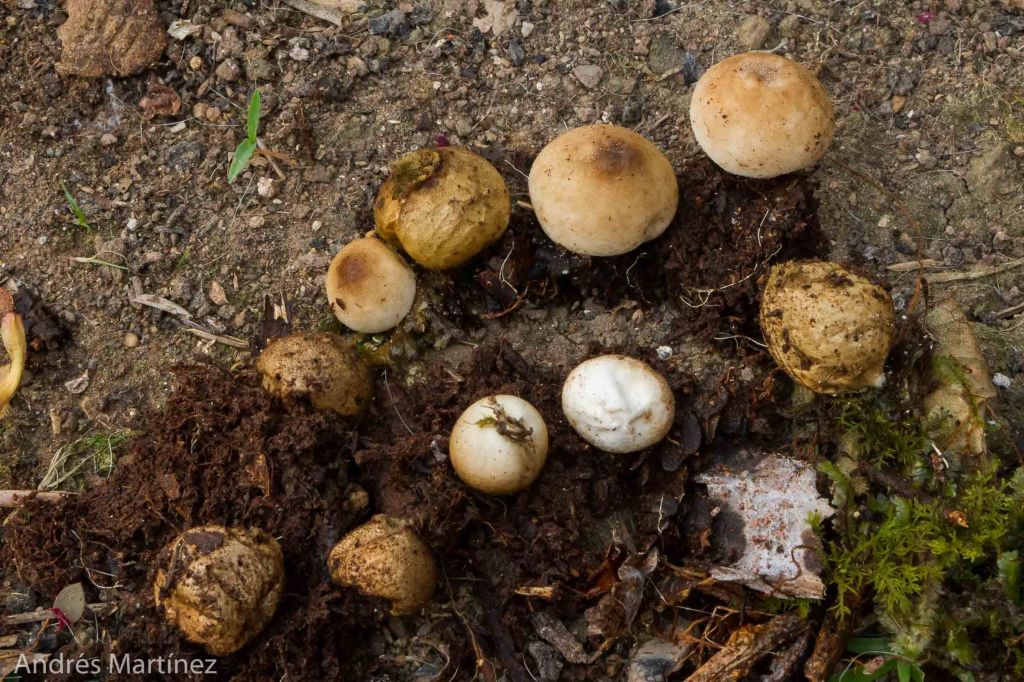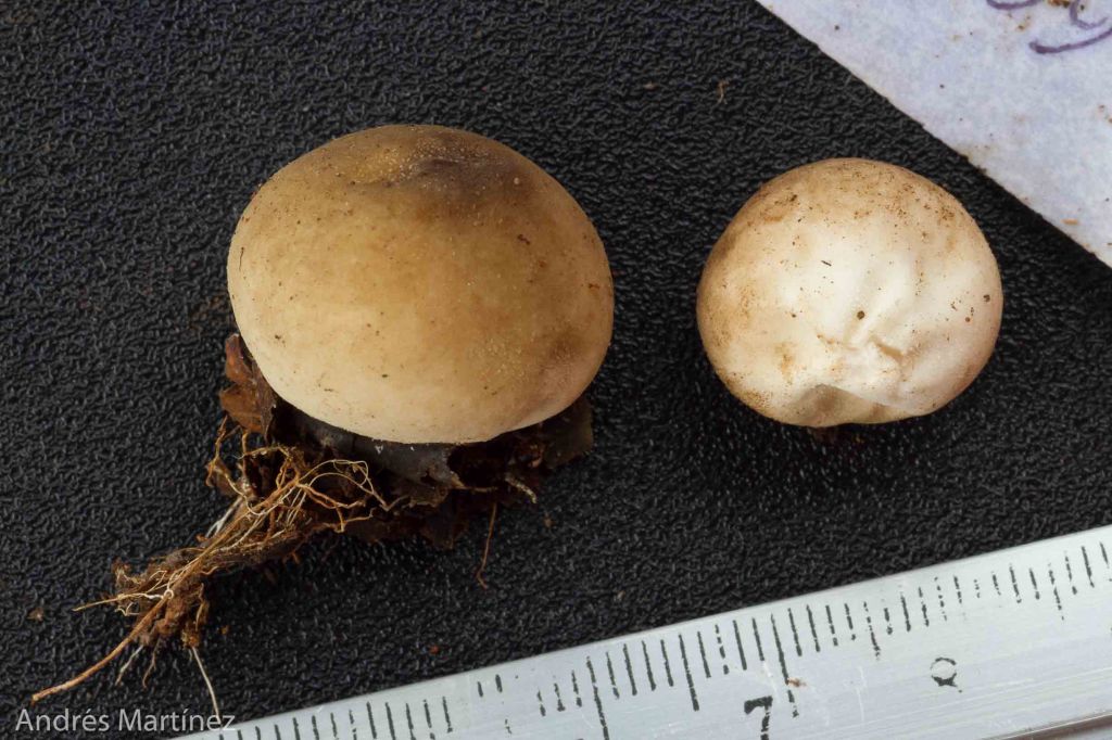 Descripción: Basidiocarpo epígeo, globoso, hasta 2 cm de diámetro; exoperidio café oscuro en la parte superior degradándose a beige claro hacia la base; liso o con diminutos aguijones hialinos, sobretodo alrededor del ostiolo; endoperidio delgado, café castaño, hasta 1 mm de ancho; base de hasta 2 mm de longitud y 6 mm de ancho y con presencia de cordones miceliales. Gleba café oliváceo; columela ausente.
