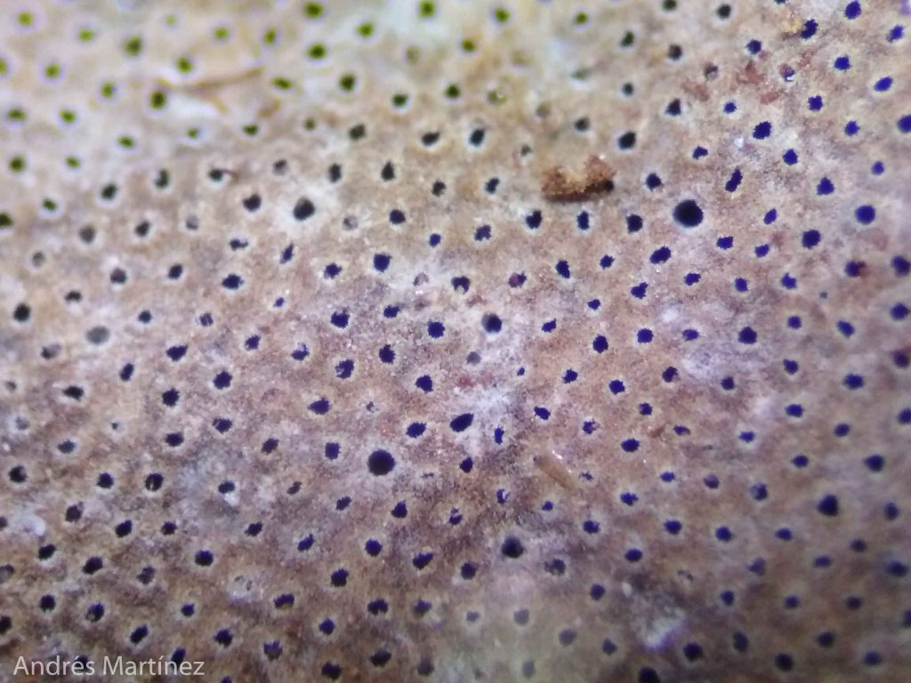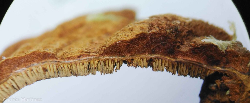 Poros hacia la base del basidioma